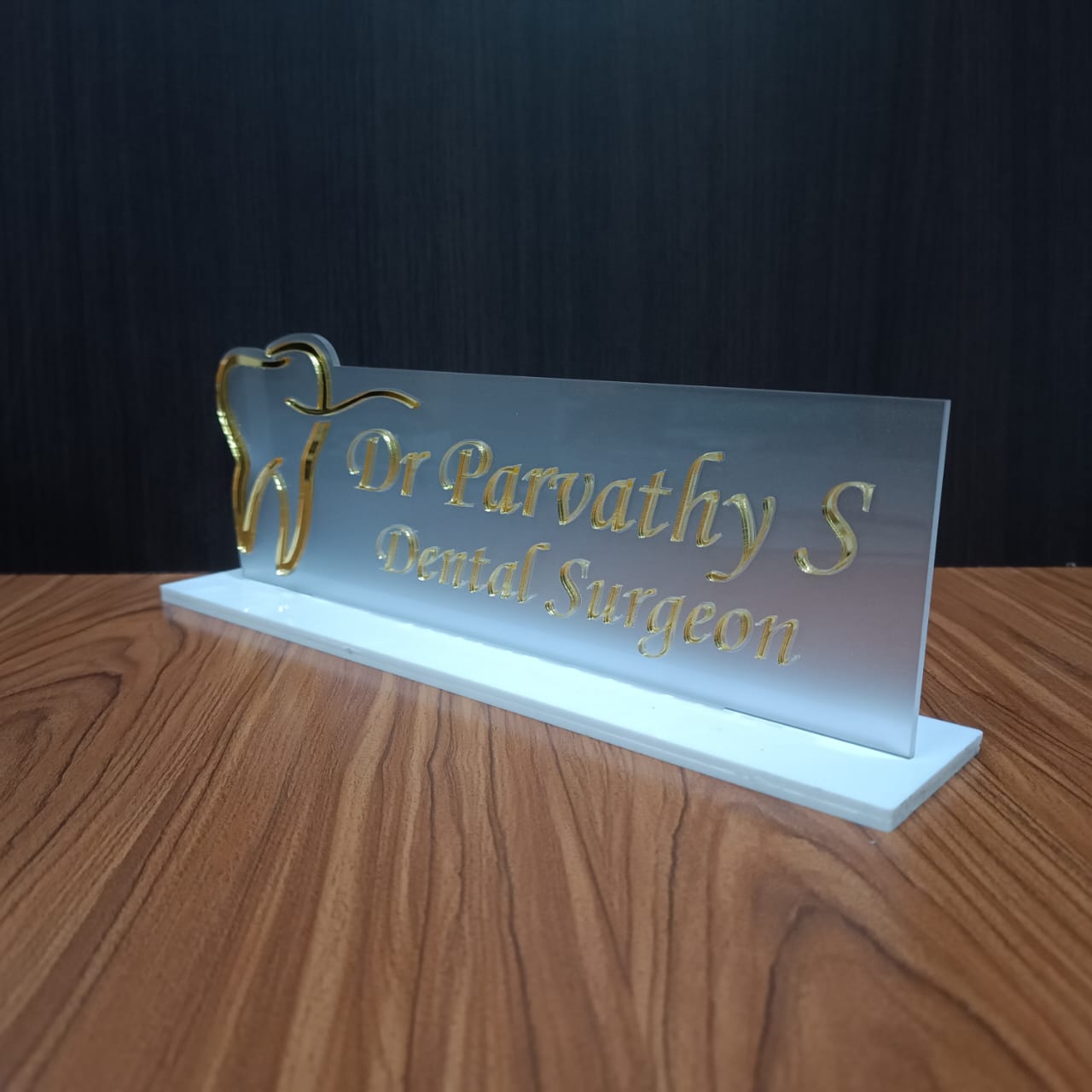 Made from high-quality materials, the nameplate features dental-themed designs like a tooth icon, giving it a sleek and modern look that reflects your profession. Personalize it with your name or clinic name to make it truly yours.